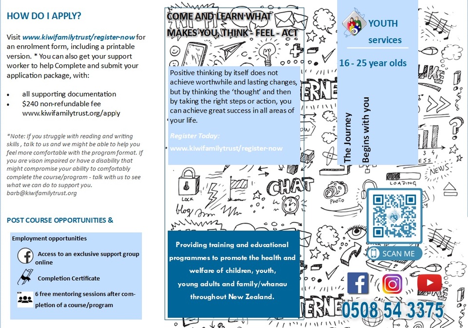 We provide life skills training to youth aged 16-25 in the form of programmes and mentoring and one on one support services.
